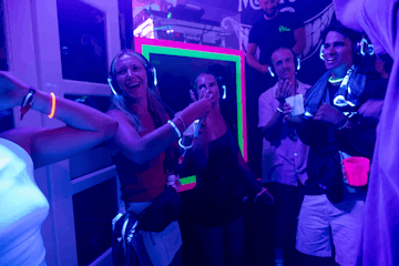 Alice in Wonderland themed, Shush is a silent-disco illuminated by neon lights and music to suit every taste. With 3 channels to choose from, pop, hip hop and EDM, you’ll be dancing and grinning like the Cheshire Cat in no time.